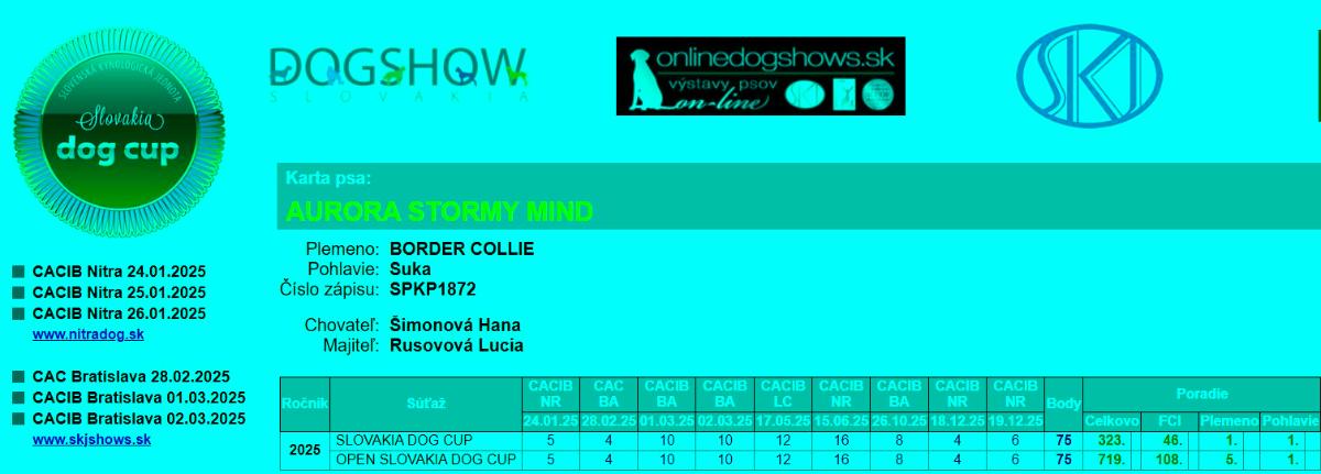 Noxi získala 1.miesto zo všetkých borderiek zapísaných pod Slovenskou plemenou knihou a 5.miesto celkovo zo všetkých borderiek čo sa celý rok zúčastňovali SK medzinárodných výstav, ale stále 1. zo všetkých sučiek 💗